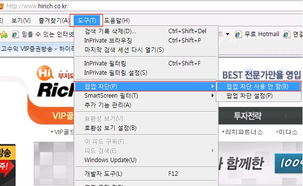 ÀÎÅÍ³Ý »ó´ÜÀÇ µµ±¸¶õ¿¡ ÆË¾÷Â÷´Ü¿¡¼ »çÀÌÆ®ÀÇ ÆË¾÷À» Çã¿ëÇÏ¿© ÁÖ½Ã±æ ¹Ù¶ø´Ï´Ù.